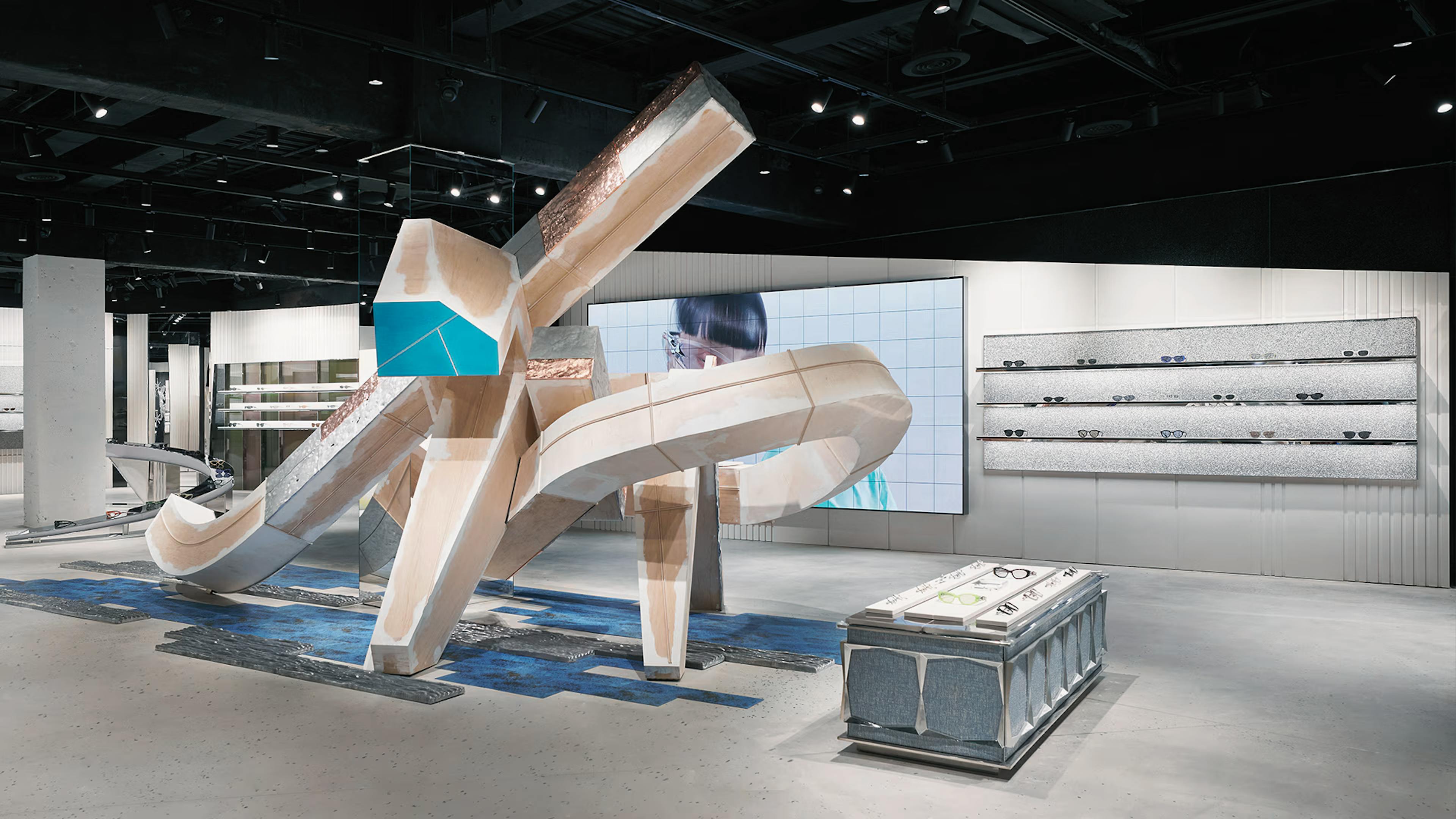 The object does not seek to be the protagonist; it seeks to interrupt. In the fluid retail flow of the Shanghai pop-up, this structure intentionally obstructs the path. Visitors must navigate around it, crouch, or lean in. We exposed the raw grain of the wood and embraced the aesthetic of the "unfinished." It is a visual translation of Gentle Monster’s worldview—a refusal to be defined or completed.